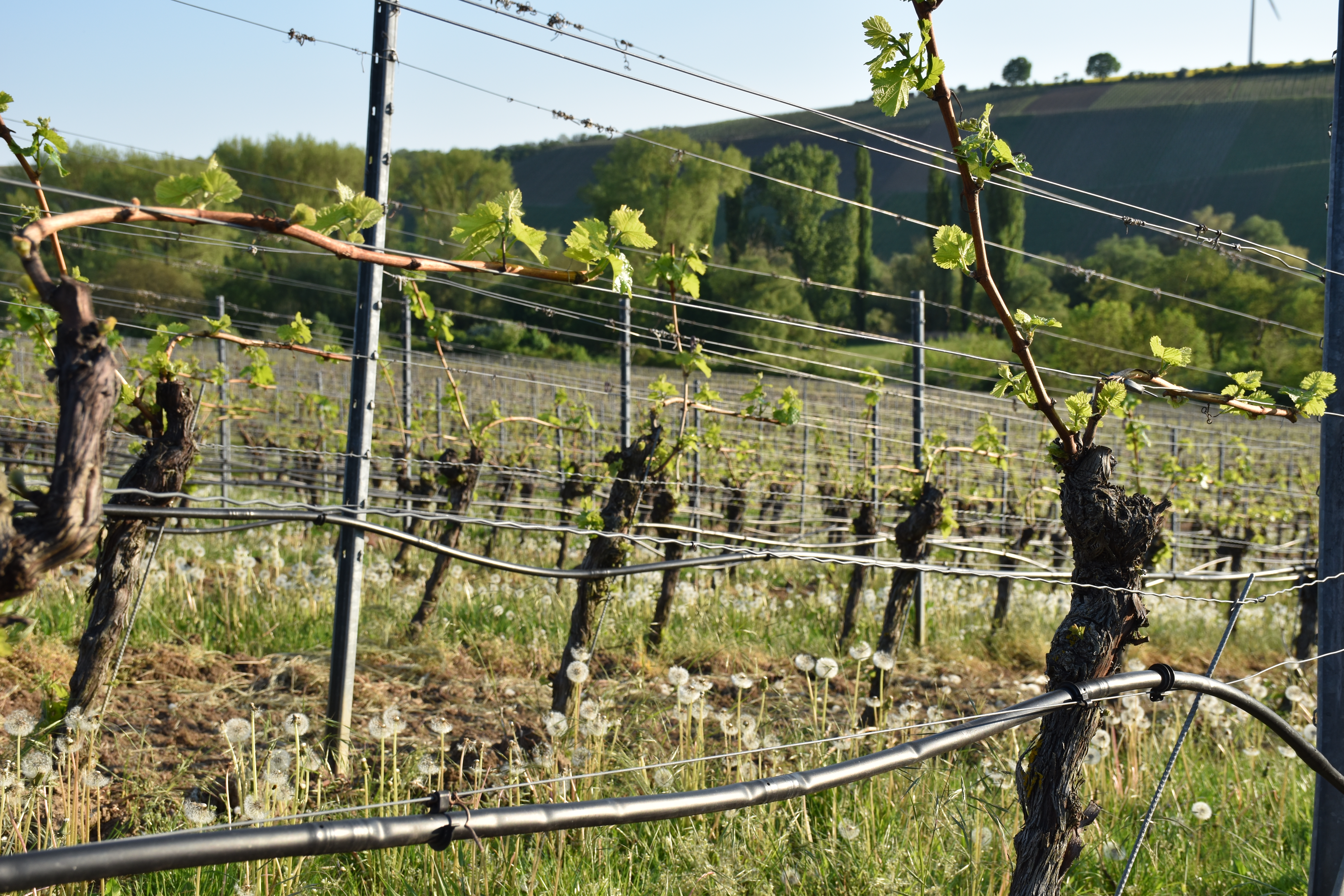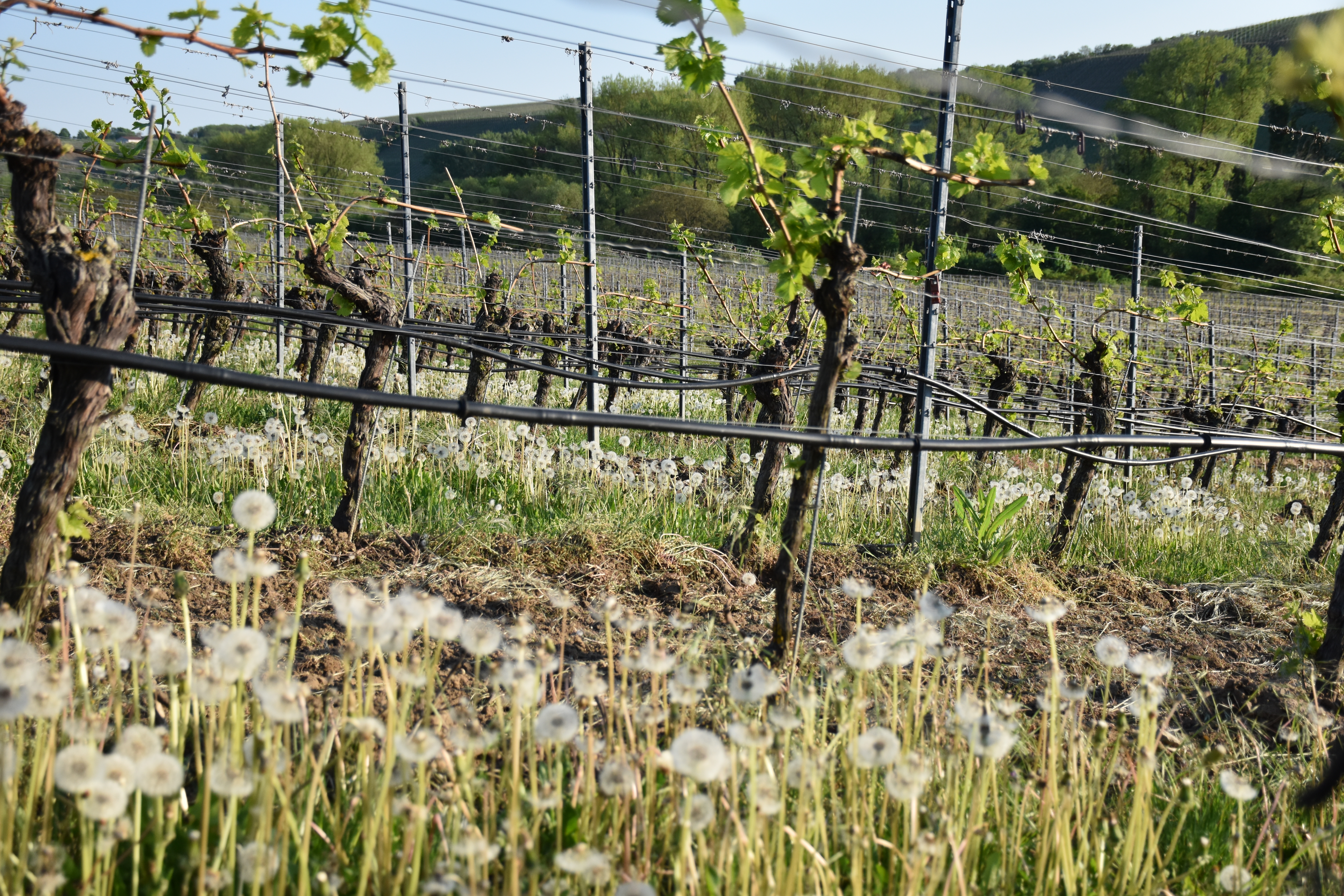 die Vegetation ist in vollem Gange, die Reben haben gut ausgetrieben und sind für die Jahreszeit schon verhältnismäßig weit. Die letzten Tage haben uns neben viel Sonnenschein auch mehrmals etwas Regen beschert – so sind wir hoffnungsfroh, dass die Natur uns weiterhin einen guten Verlauf schenkt und ein schöner Tropfen heranwächst.